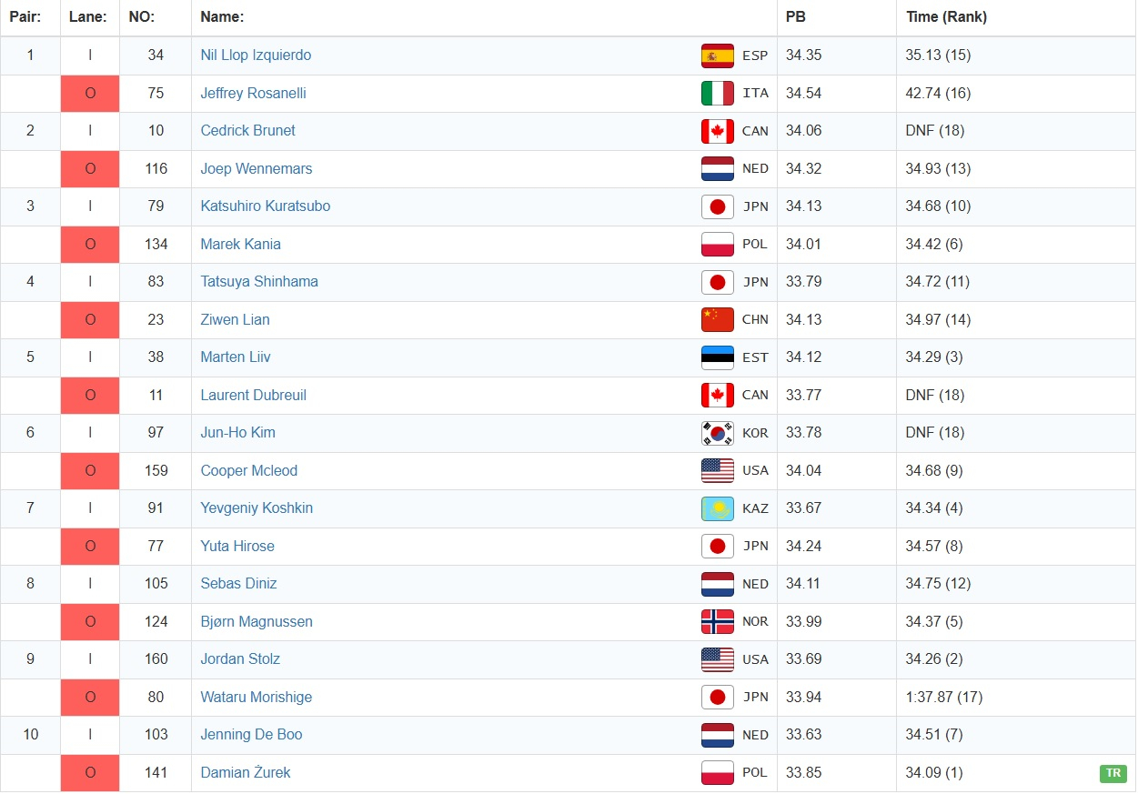 Победителем этапа стал поляк Дамьян Цурек - 34.09, в топ-3 вошли лидер общего зачета сезона Джордан Штольц (34.26) и эстонец Мартен Лиив (34.29).