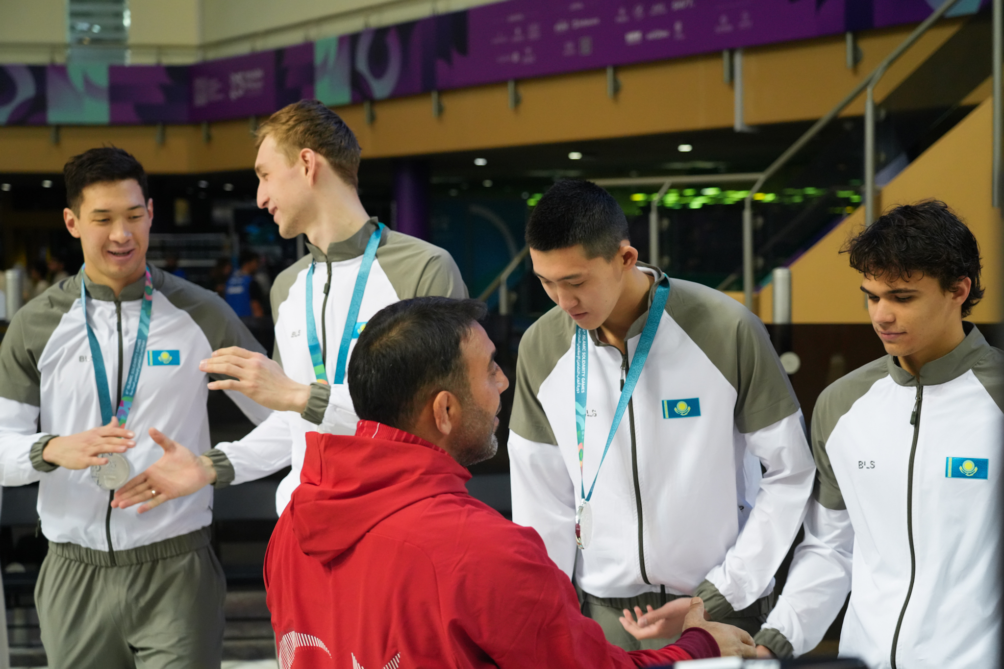 🥈 Мужская команда Казахстана по плаванию стала второй в эстафете 4 по 100 метров (комплексное плавание). Серебряную медаль в копилку Казахстана принесли Адильбек Мусин, Максим Сказобцов, Айбат Мырзамуратов и Глеб Коваленя, которые преодолели дистанцию за 3:43.14.