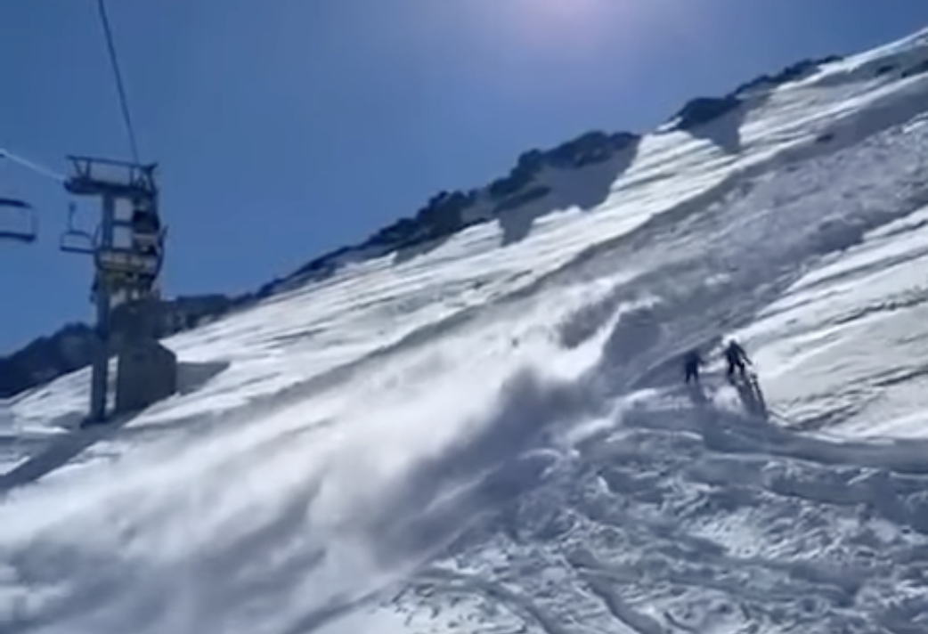 В сети появились видео момента схода лавины, снятые очевидцами. На кадрах видно, как снежная масса стремительно сходит по склону, люди снимают видео с канатной дороги, а на склонах под ними люди.