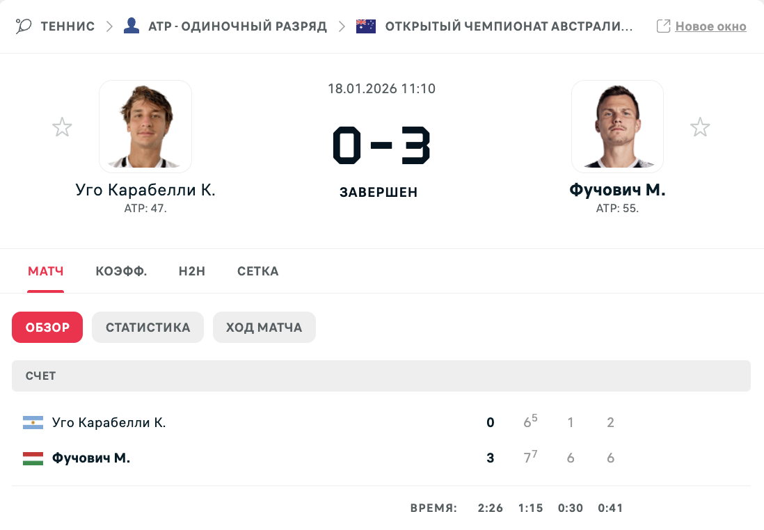 Первая ракетка Казахстана Александр Бублик (№10 ATP) успешно стартовал на Открытом чемпионате Австралии и вышел во второй круг турнира, сообщает Спорт Шредингера.