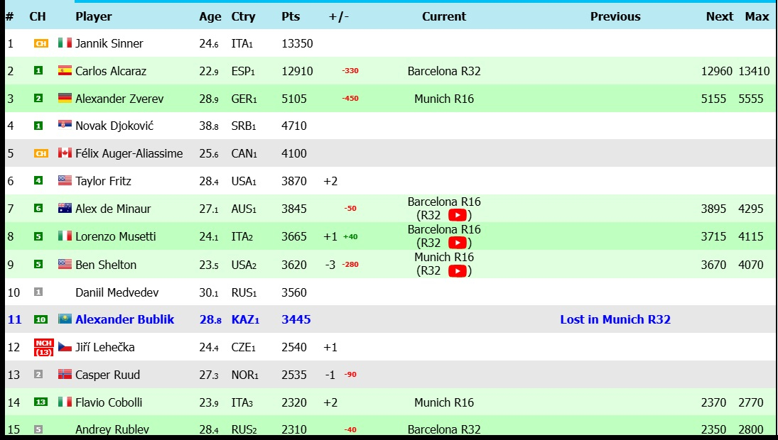 В Мюнхене Бублик упустил возможность вернуться в топ-10 мирового рейтинга. Стоящий на этой позиции Даниил Медведев пропускает игровую неделю.