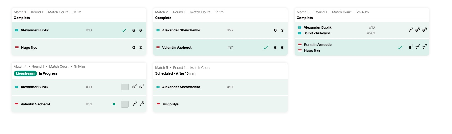 ✅Александр Бублик – Уго Нис – 6:0, 6:3.