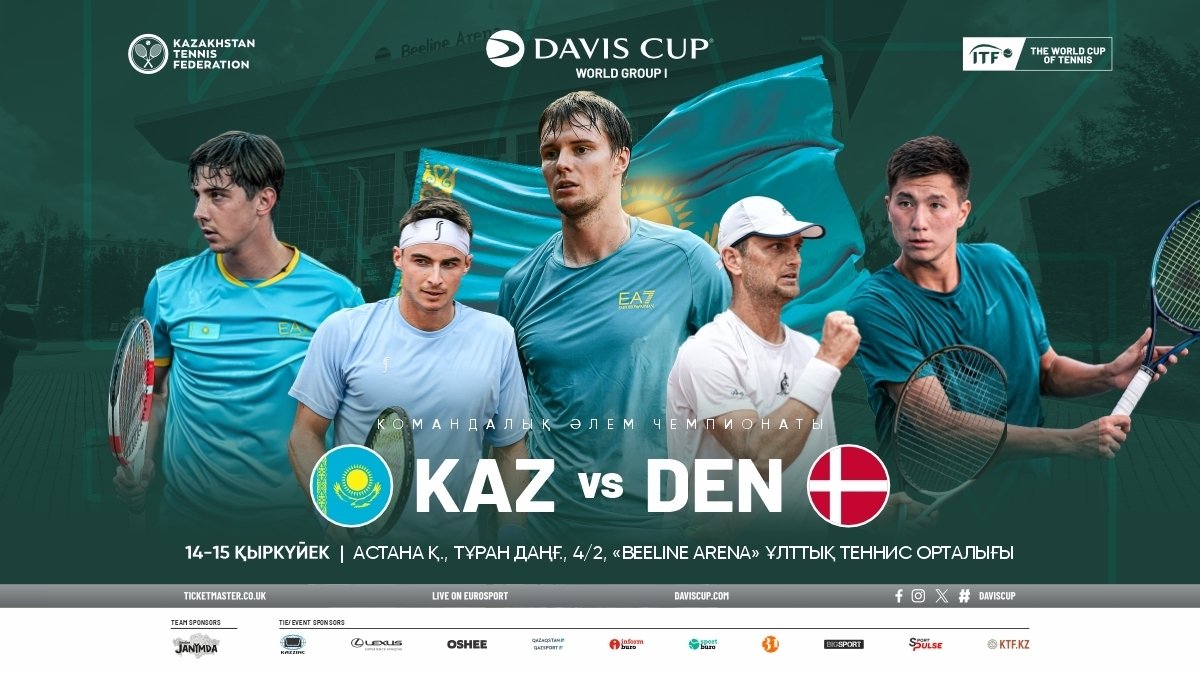 Объявлен состав сборной Казахстана по теннису на матч Кубка Дэвиса с Данией