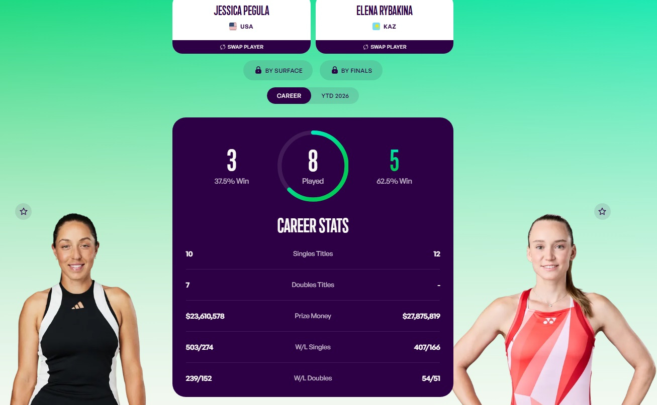 В личных встречах в рамках WTA - 5:3 в пользу Елены Рыбакиной. Елена также выиграла у американки в рамках матча сборных Казахстан - США на Billie Jean King Cup Finals осенью. Сейчас Рыбакина идет на серии из четырех побед подряд над Пегулой.