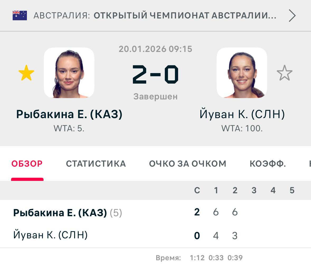 Елена Рыбакина успешно начала выступление на Australian Open, сообщает Спорт Шредингера. Первая ракетка Казахстана и пятая ракетка мира уверенно прошла первый круг турнира Большого шлема в Мельбурне.