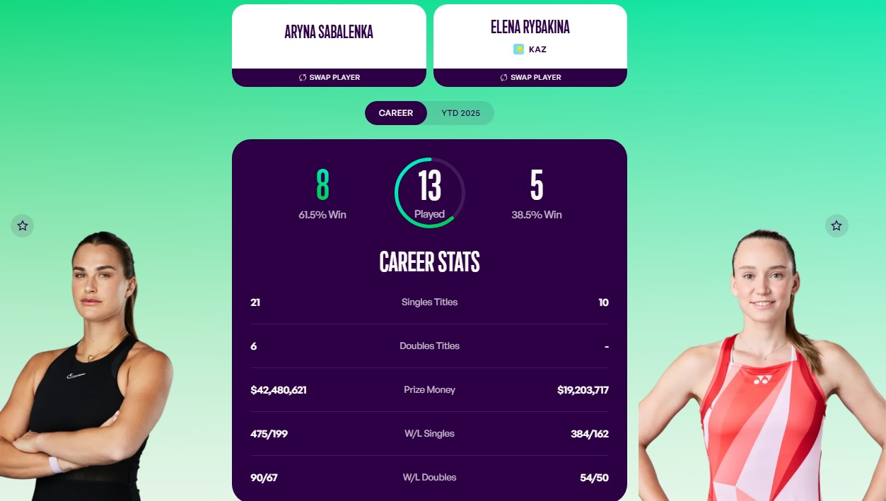 Это будет 14-й матч Рыбакиной и Соболенко в WTA. На данный момент белоруска впереди в личных матчах – 8:5, в этом году казахстанка взяла один матч из трех.