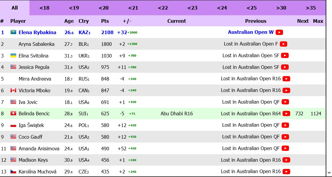 В рейтинге у Рыбакиной прибавилось 2000 очков - она станет третьей ракеткой мира в понедельник. В чемпионской гонке сезона Рыбакина идет на первой позиции.
