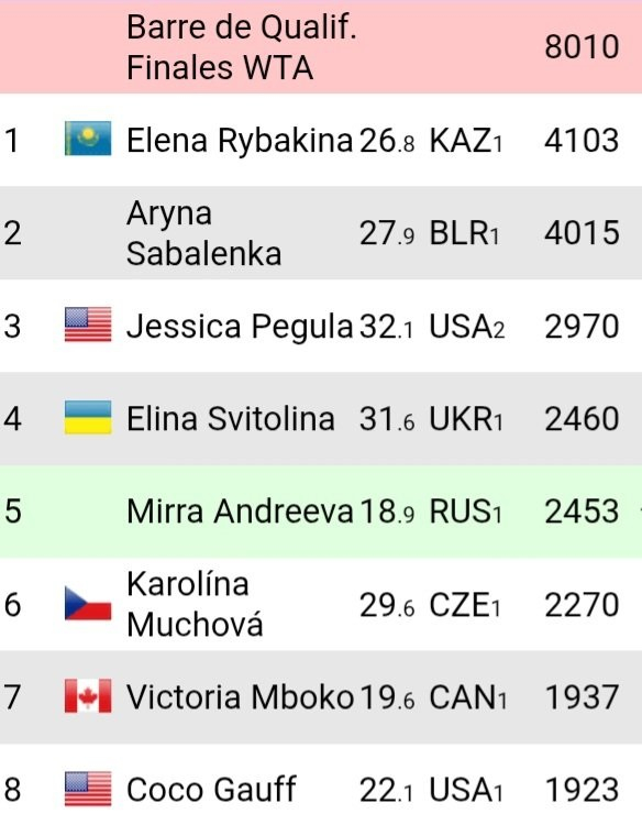 В чемпионской гонке Рыбакина сохранила первую позицию – 4103 очка против 4015 у Соболенко.