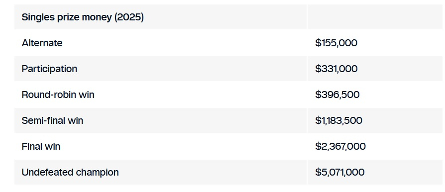 Таким образом, Бублик заработает полторы сотни тысяч долларов за звание "запасного", не сыграв ни одного матча. Победитель турнира получит более 5 миллионов долларов при условии, если выиграет все пять матчей. Пока по такому графику идут лидеры мирового рейтинга Карлос Алькарас и Янник Синнер