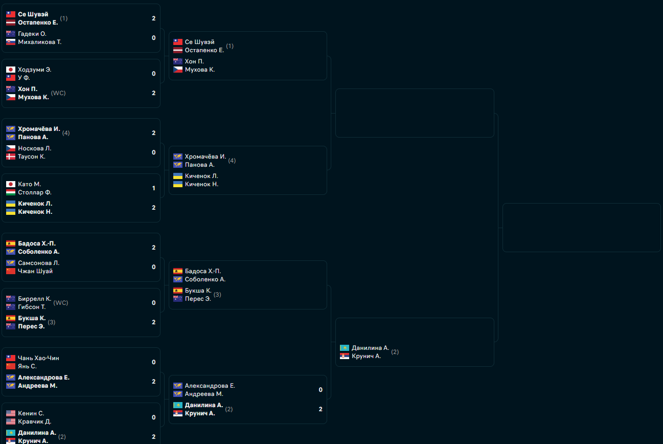Данилина занимает 14-е место в парном рейтинге WTA, а Крунич располагается на 17-й строчке. В полуфинале, пара Данилина - Крунич, померится силами с лучшими в противостоянии тандемов Су Шувей - Остапенко с Хон - Мухова.