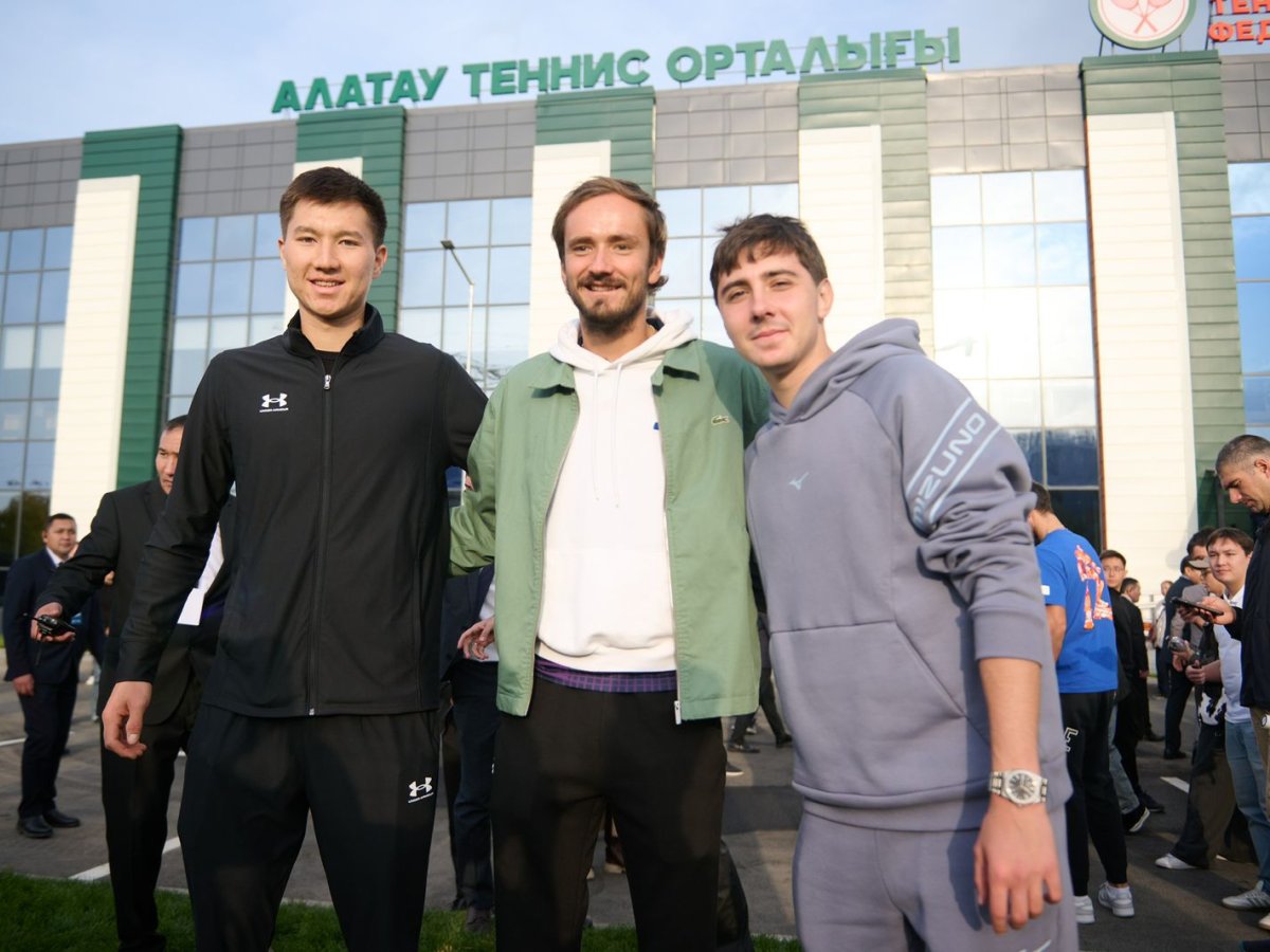 Звезды мирового тенниса Даниил Медведев, Карен Хачанов, Александр Шевченко, Бейбит Жукаев открыли в Алматы новый теннисный центр "Алатау", сообщает Спорт Шредингера.