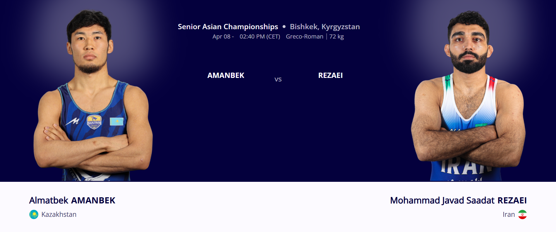 Шансы на бронзовую медаль также сохраняют Ибрагим Магомадов (82 кг) и Ислам Евлоев (97 кг). Они проведут свои схватки 8 апреля. Также сегодня в финале выступит Алматбек Аманбек в весовой категории до 72 кг - его соперником станет иранец Мохаммад Резаи.