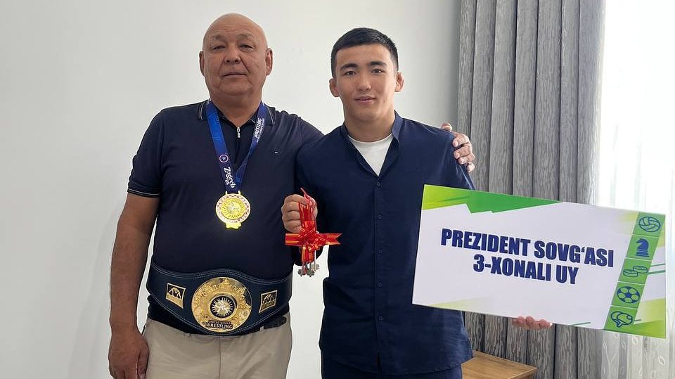 Казахский чемпион мира по греко-римской борьбе, выступающий за Узбекистан, Айтжан Калмаханов получил подарок от Президента страны - трёхкомнатную квартиру, сообщает Спорт Шредингера.