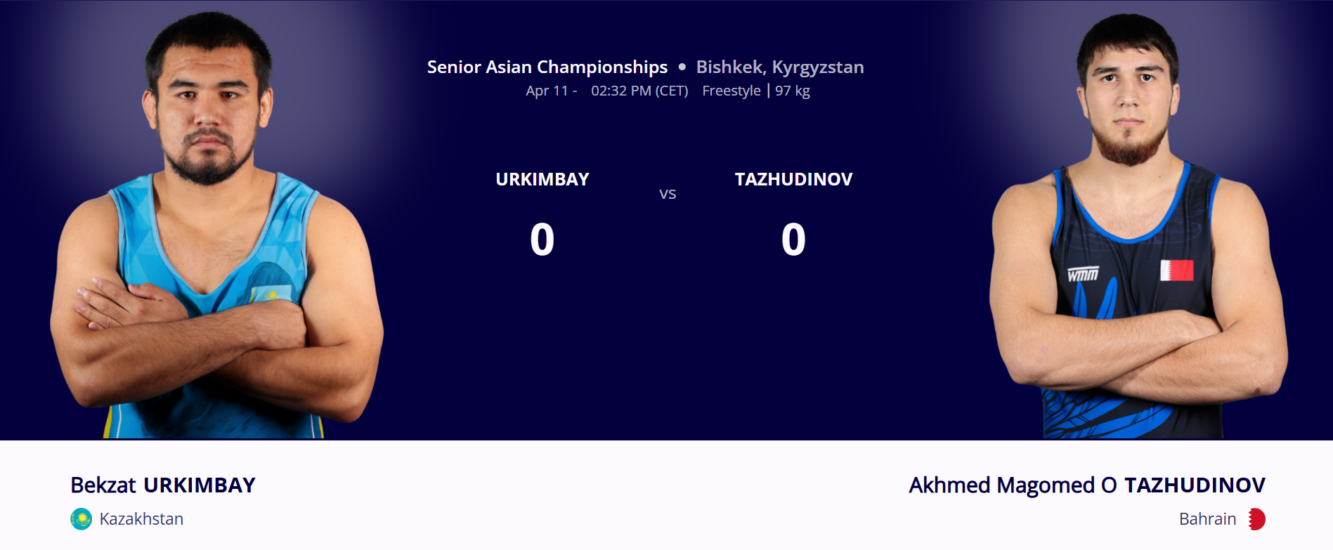 В схватке за бронзу 11 апреля Ахмед Тажудинов встретится с казахстанским борцом Бекзатом Уркимбаем.