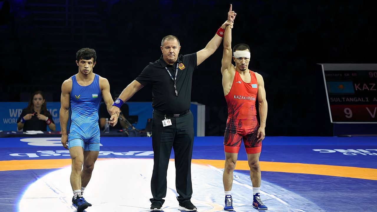 В решающей схватке в весовой категории до 60 кг казахстанский борец досрочно победил Алишера Ганиева из Узбекистана со счётом 9:0 и стал чемпионом мира.