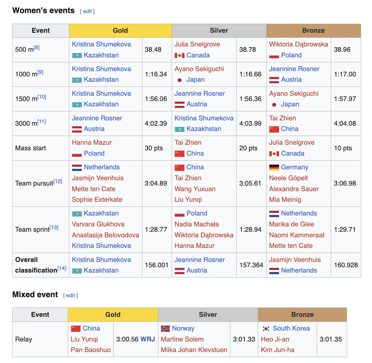 - 🇨🇳 Китай - 6 медалей (2🥇)