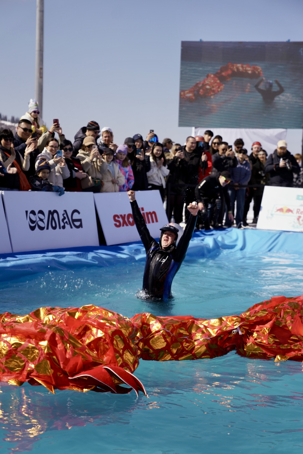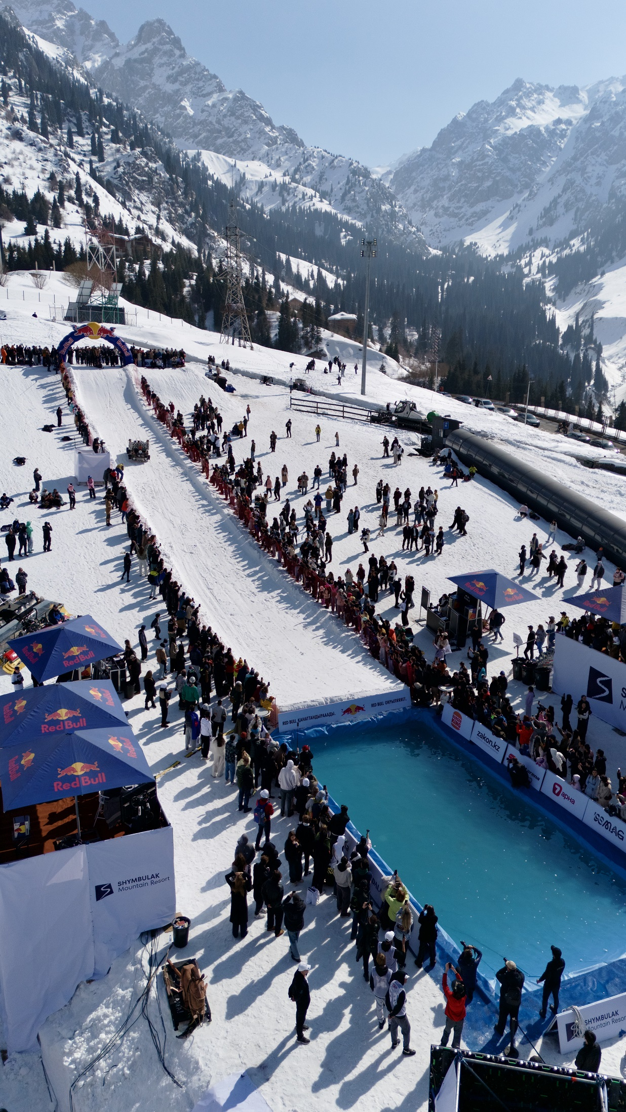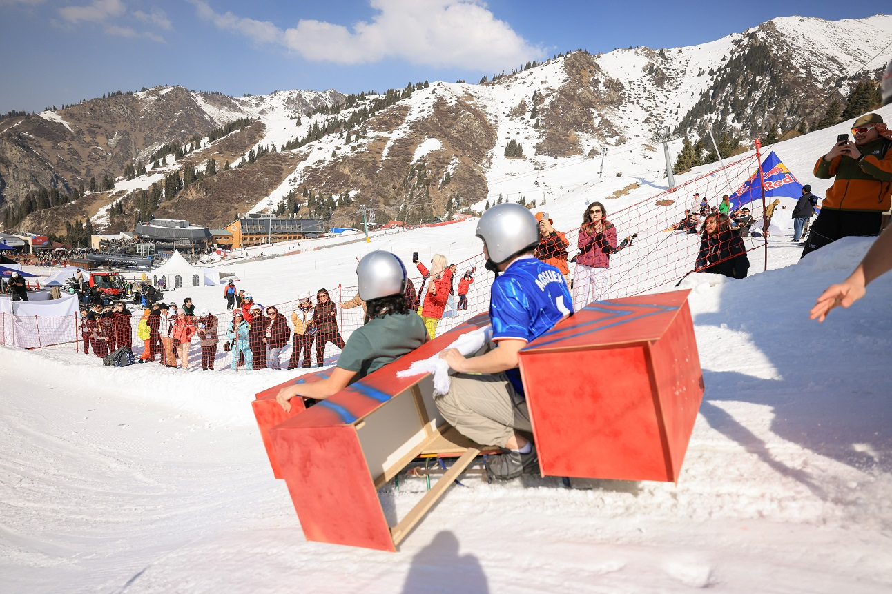 Ежегодное безумие от Red Bull с прыжками в ледяной бассейн - Jump & Freeze - прошло в Наурыз на Шымбулаке. Героями турнира дня стала команда Red Dragon, которая полгода вручную строила своего “дракона”, а затем превратила спуск в шаманский обряд с финальным прыжком в ледяную воду.